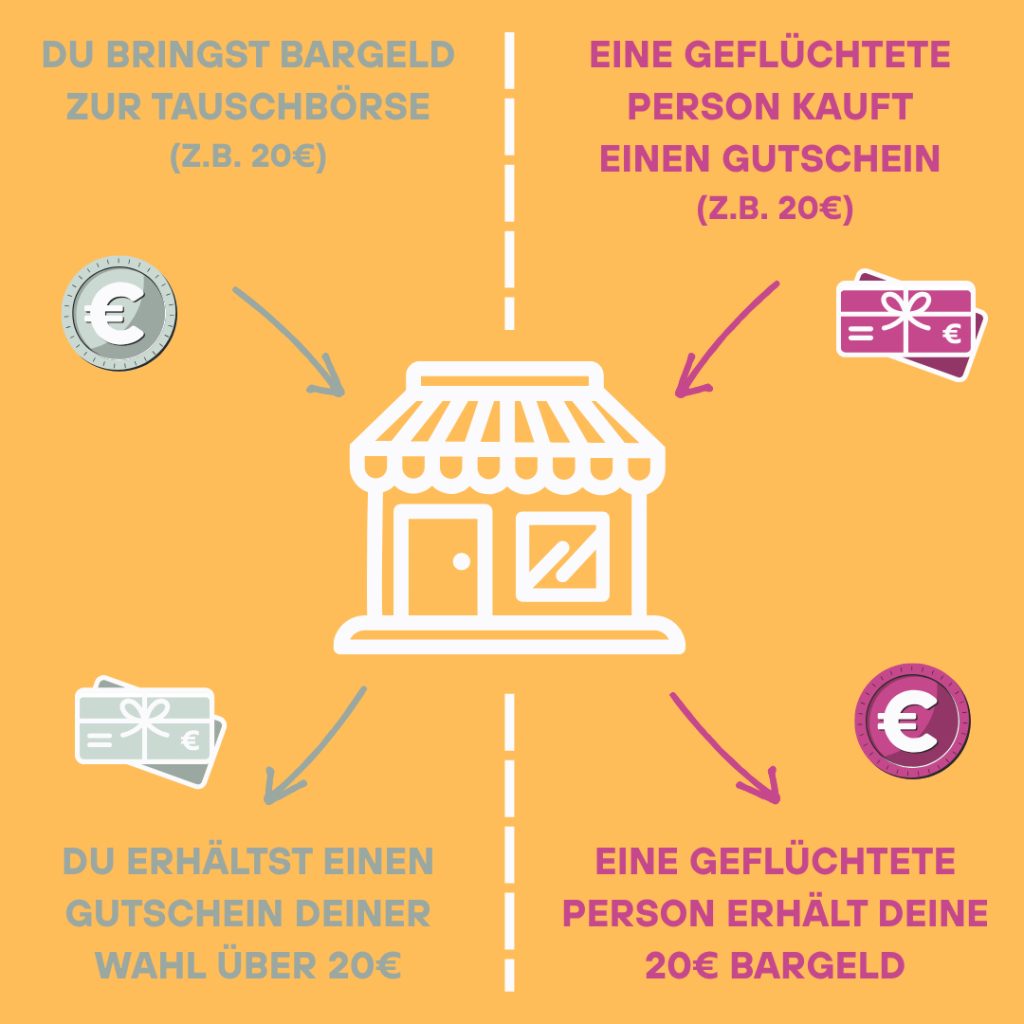 In Ludwigsburg bauen wir gerade eine lokale Tauschbörse auf, die Geflüchteten wieder Bargeld zugänglich macht!