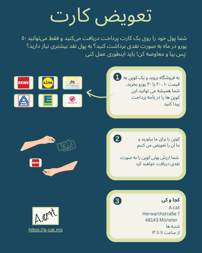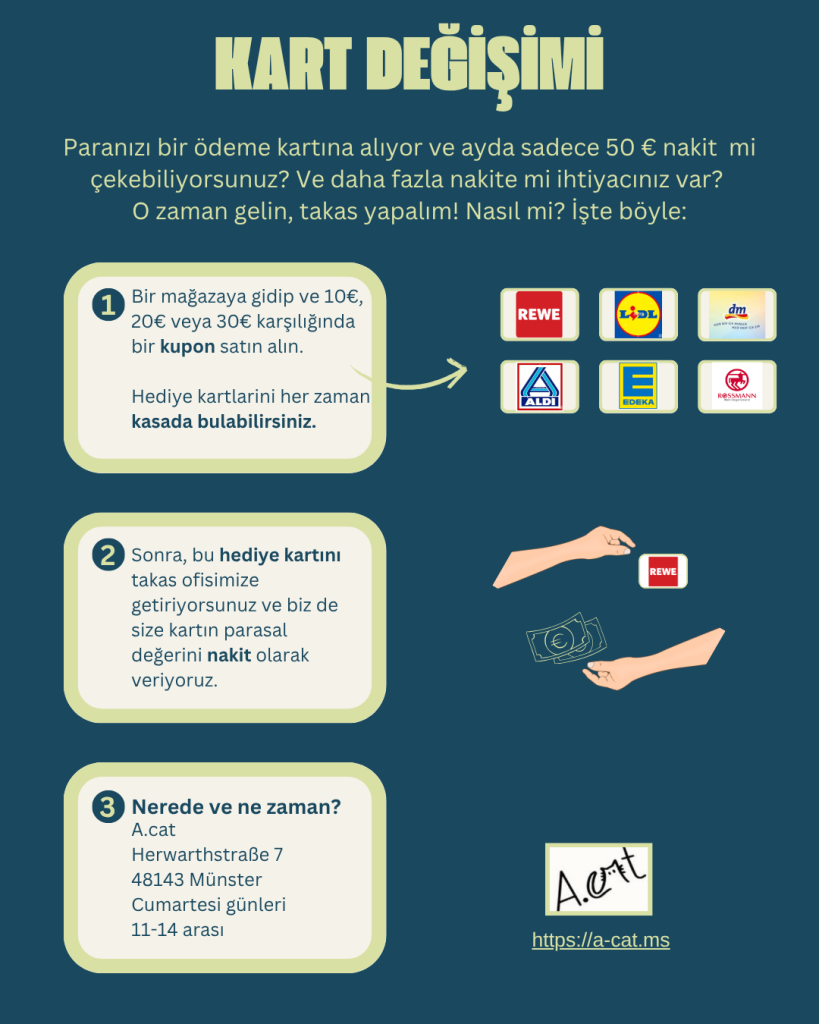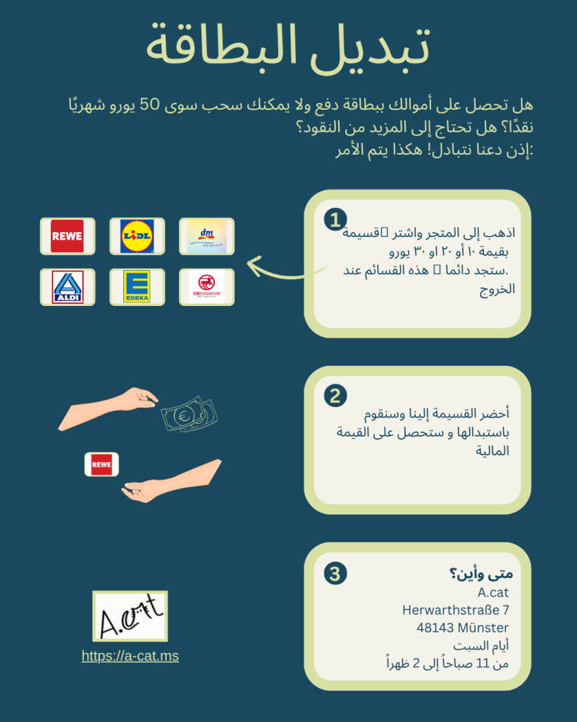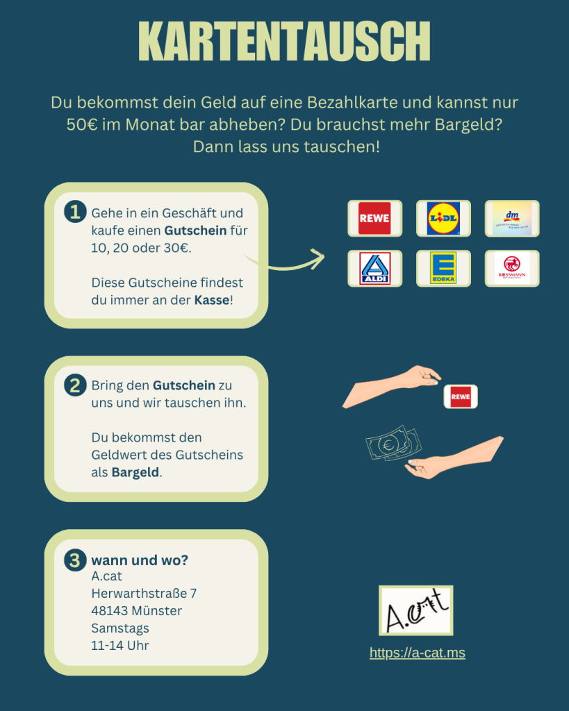- Folge uns auf Instagram @gegenbezahlkarte.ms ! Da erfährst du immer die neusten Informationen.